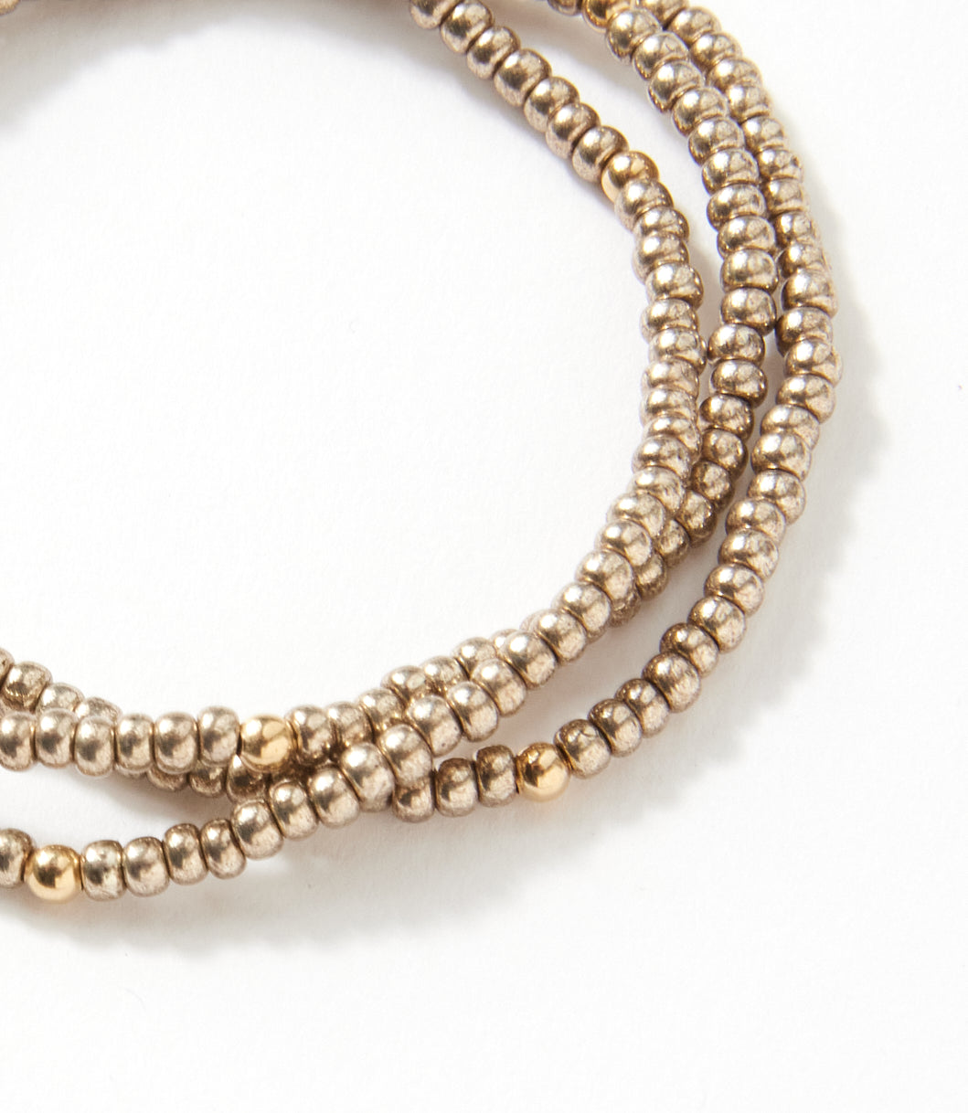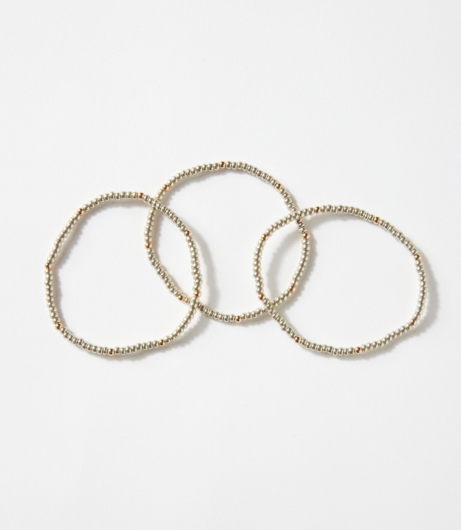 Elevate your everyday style with this set of three Beaded Crystal Bracelets. Made with luminous Czech glass and accented by gold-filled beads, they bring a refined sparkle and warm bronze tone to your look. Designed to slip on with ease, these versatile bracelets can be worn stacked together for a striking layered effect or separately for a touch of subtle shine.