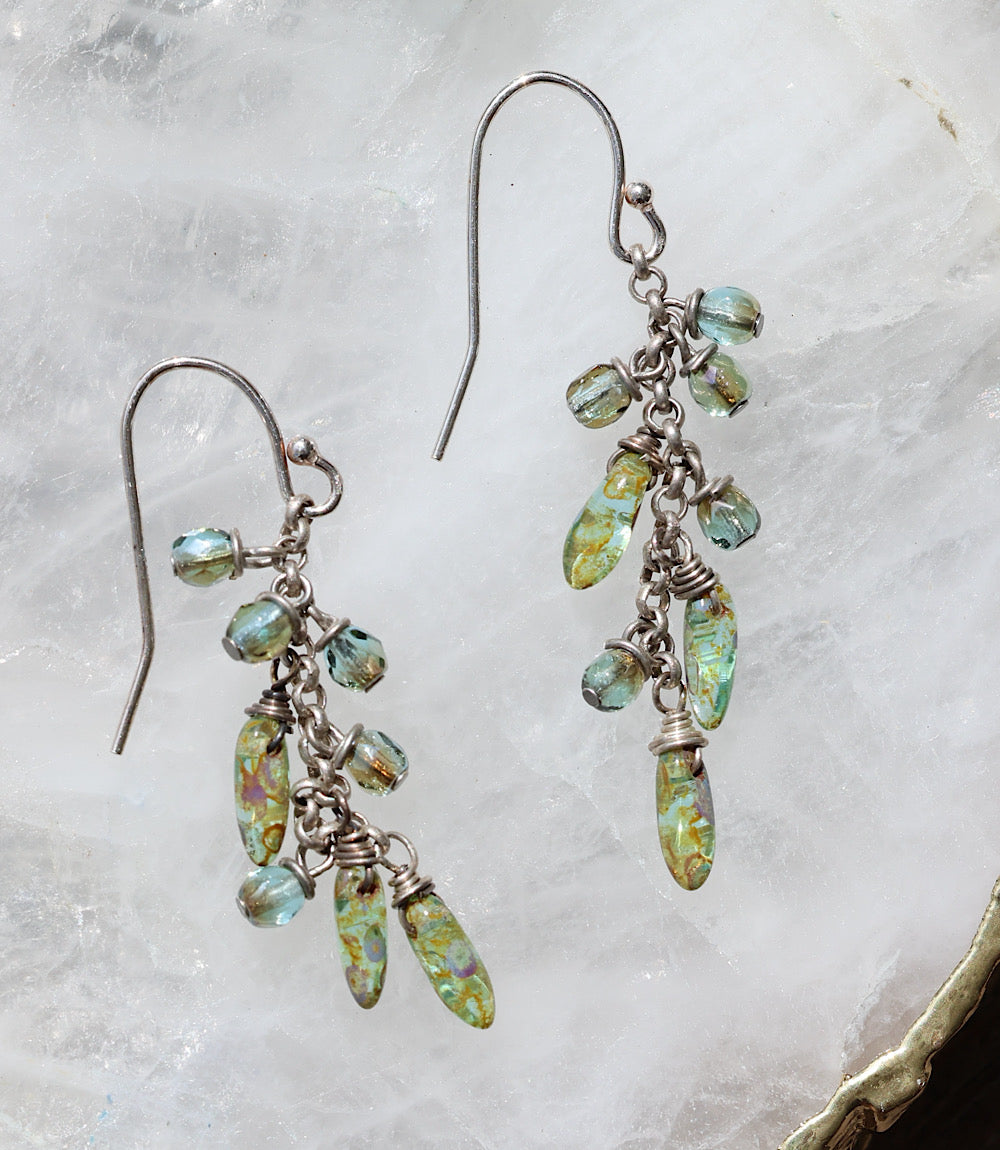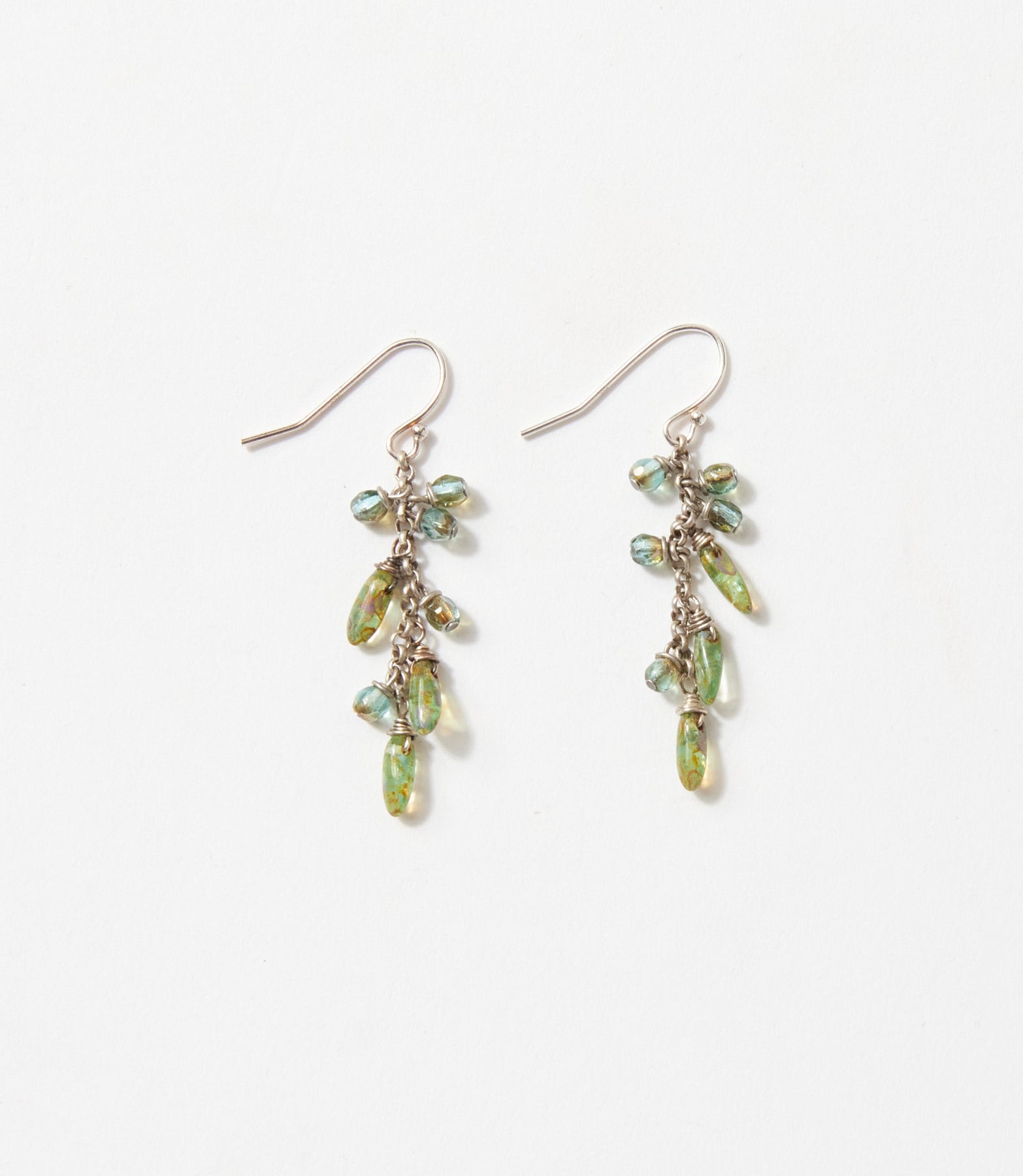 Bring a touch of nature-inspired charm with the Rustic Creek Glass Cluster Earrings. Featuring shimmering green Czech glass beads that cascade in a delicate cluster design, these earrings capture light beautifully with every movement. Crafted with sterling silver hooks, they provide both comfort and secure wear while adding effortless elegance to your look.