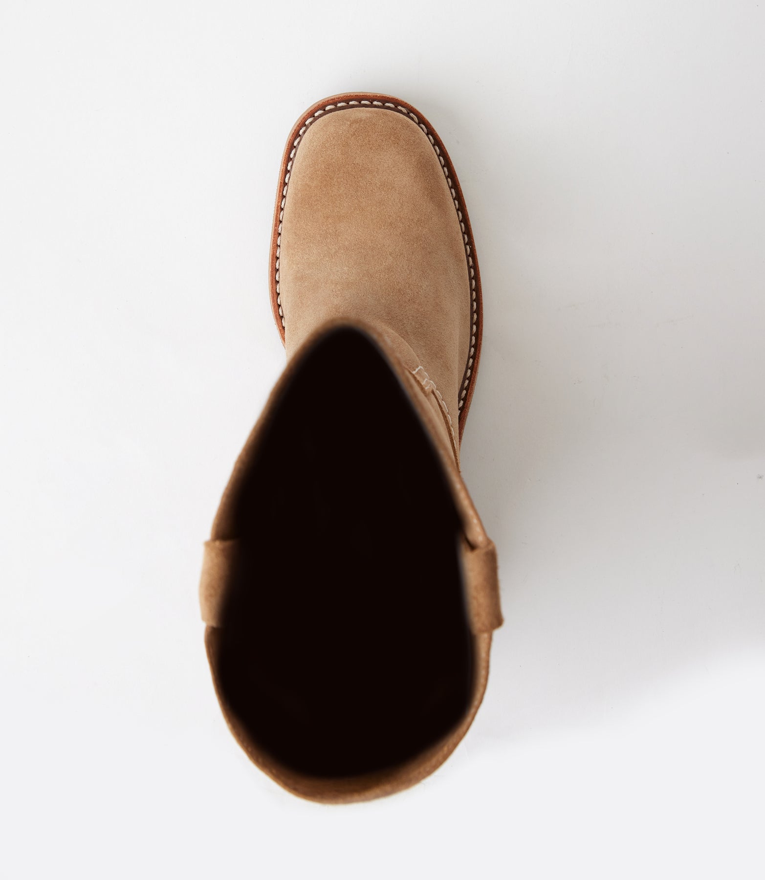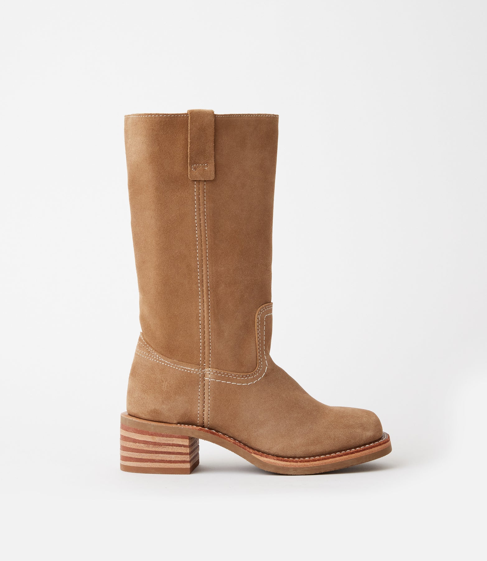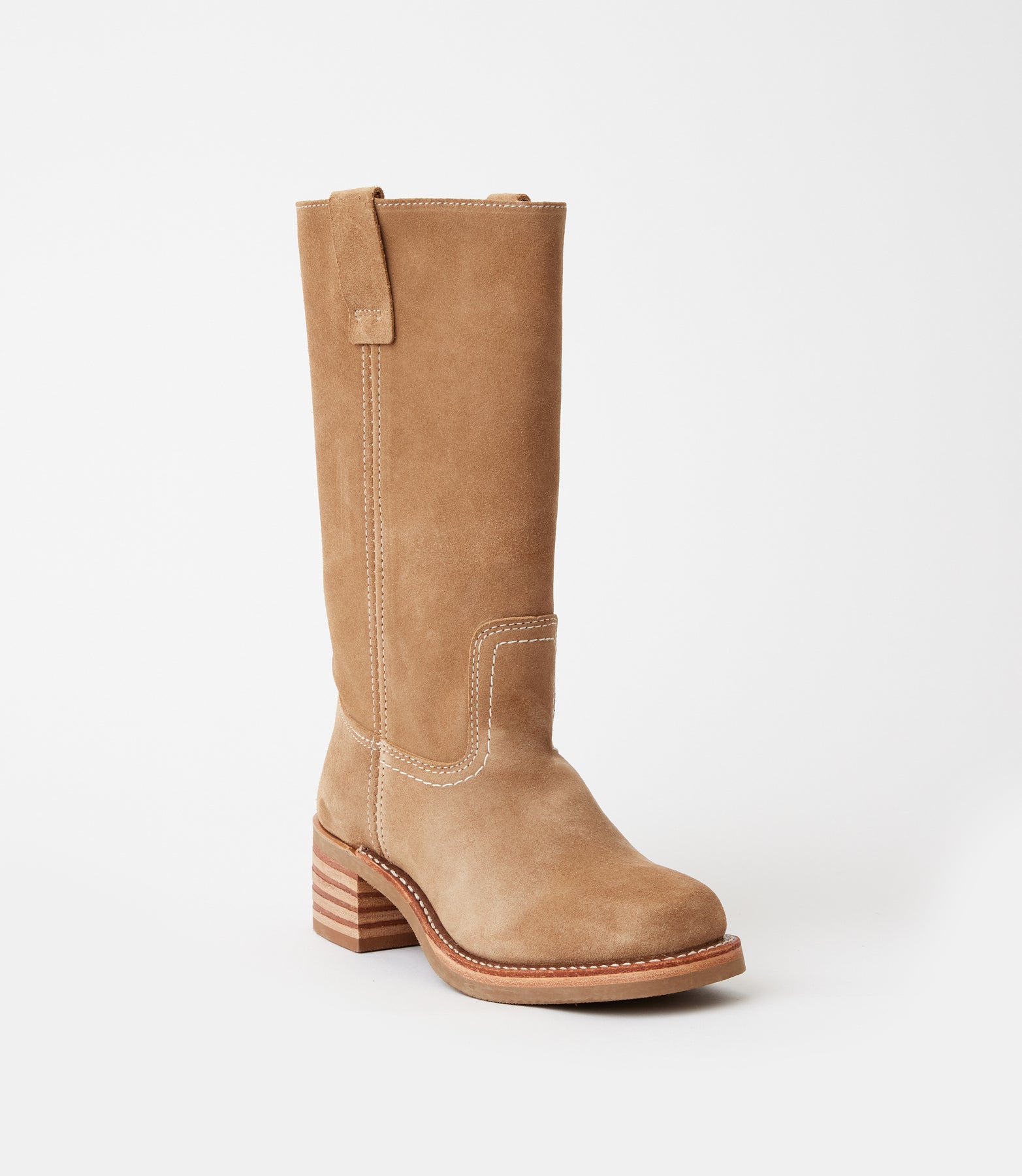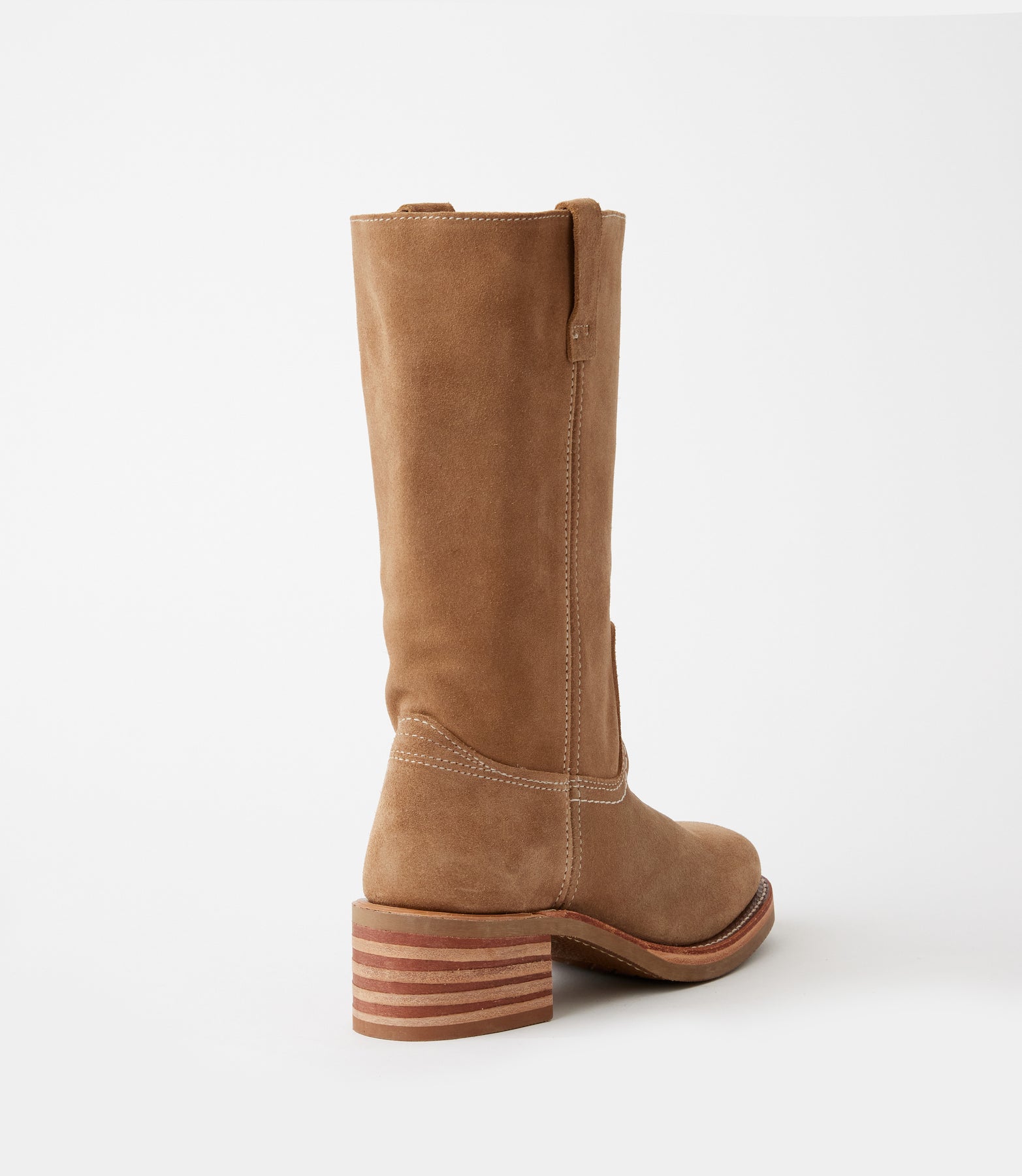 The Frye Campus 12R in tan showcases rich suede with subtle natural contrast that highlights the boot’s handcrafted look. The classic round toe keeps the silhouette timeless and comfortable, while the easy pull-on design adds everyday convenience. Finished with a stacked heel, this iconic style pairs effortlessly with denim and casual staples.