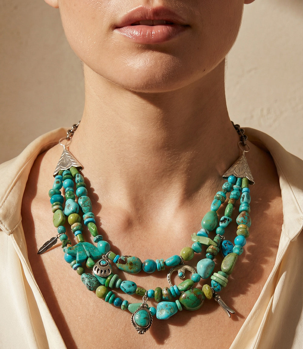 Lapis & Green Turquoise, Horn And Silver Necklace