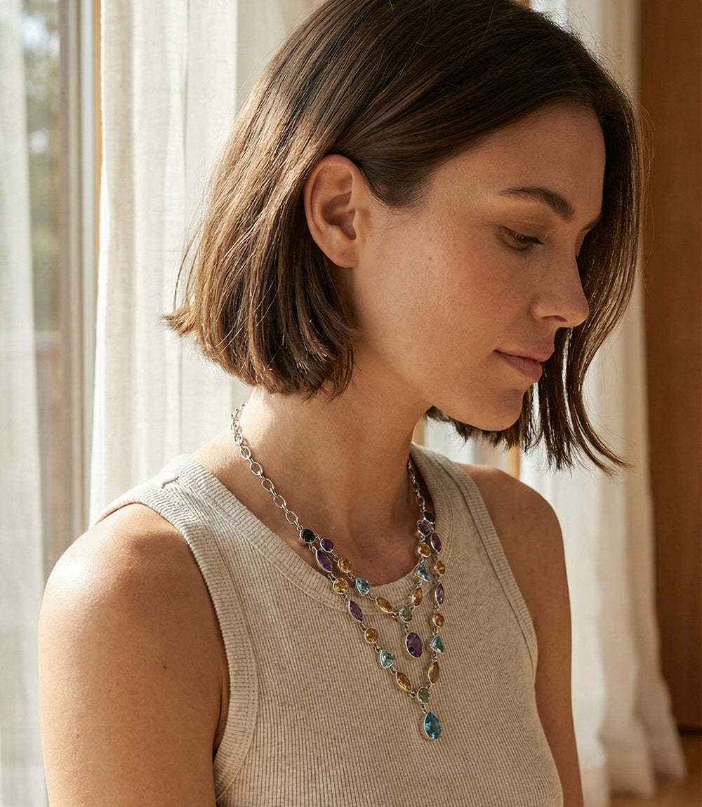 Multi Gemstone Double Strand Necklace