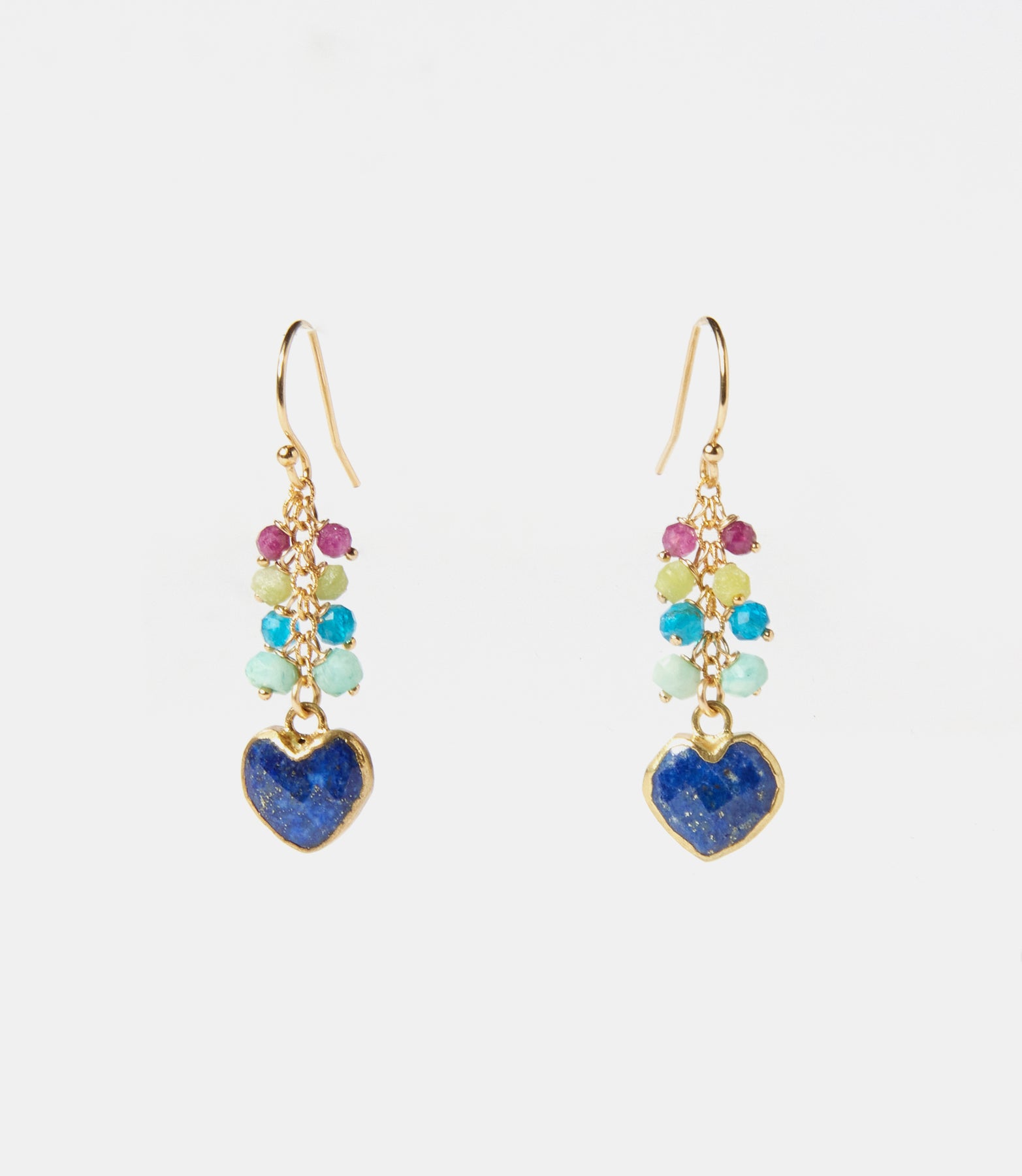 Add a pop of color and sophistication to your attire with our Aurora Dangle Earrings. The heart shaped gemstones create a mesmerizing aurora effect with every move, while the dangle design adds a touch of grace and flow. Perfect for any occasion, these earrings are a must-have in your jewelry collection.