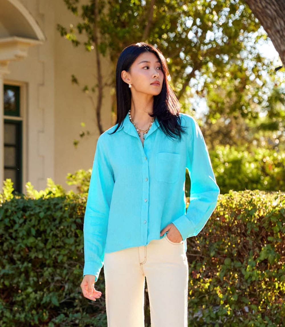 Simple silhouettes with special touches that make your look take shape, our cute tops for women are designed with everyday wear in mind. Our trendy tops for women have delicately draped necklines and soft, billowy sleeves that add a feminine touch to any outfit while asymmetric hemlines and subtle v-necks flatter every body shape. You’ll find ultra-soft and breathable fabrics in all our boho tops and fancy tops such as chambray and linen as well as silk crepe for a sophisticated finish and spandex blends for base layer comfort. Whether you are shopping for summer tops a cozy sweater, printed top, blouse or the perfect top for your next date night, we offer all kinds of stylish tops to fit the occasion. Our wide selection of trendy women's tops is the perfect addition to any wardrobe and goes perfectly with a pair of cute bottoms like denim skinny jeans, wide leg pants, shorts, or flowy skirts. We know you are going to love creating the perfect outfit with our chic clothing collection of blouses tees, different pattern options and sustainable tops.
