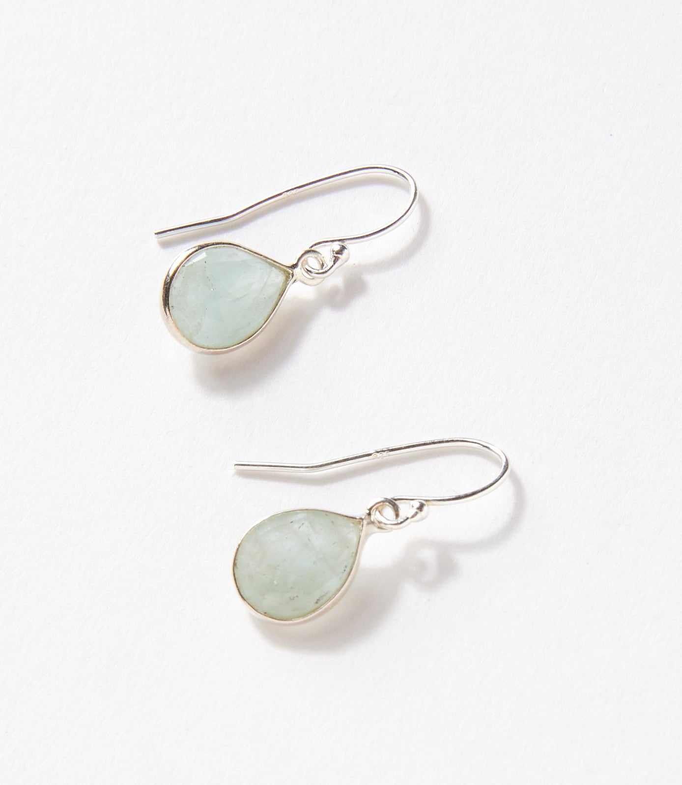 Faceted aquamarine teardrop earrings set in sterling silver with soft aqua gemstones