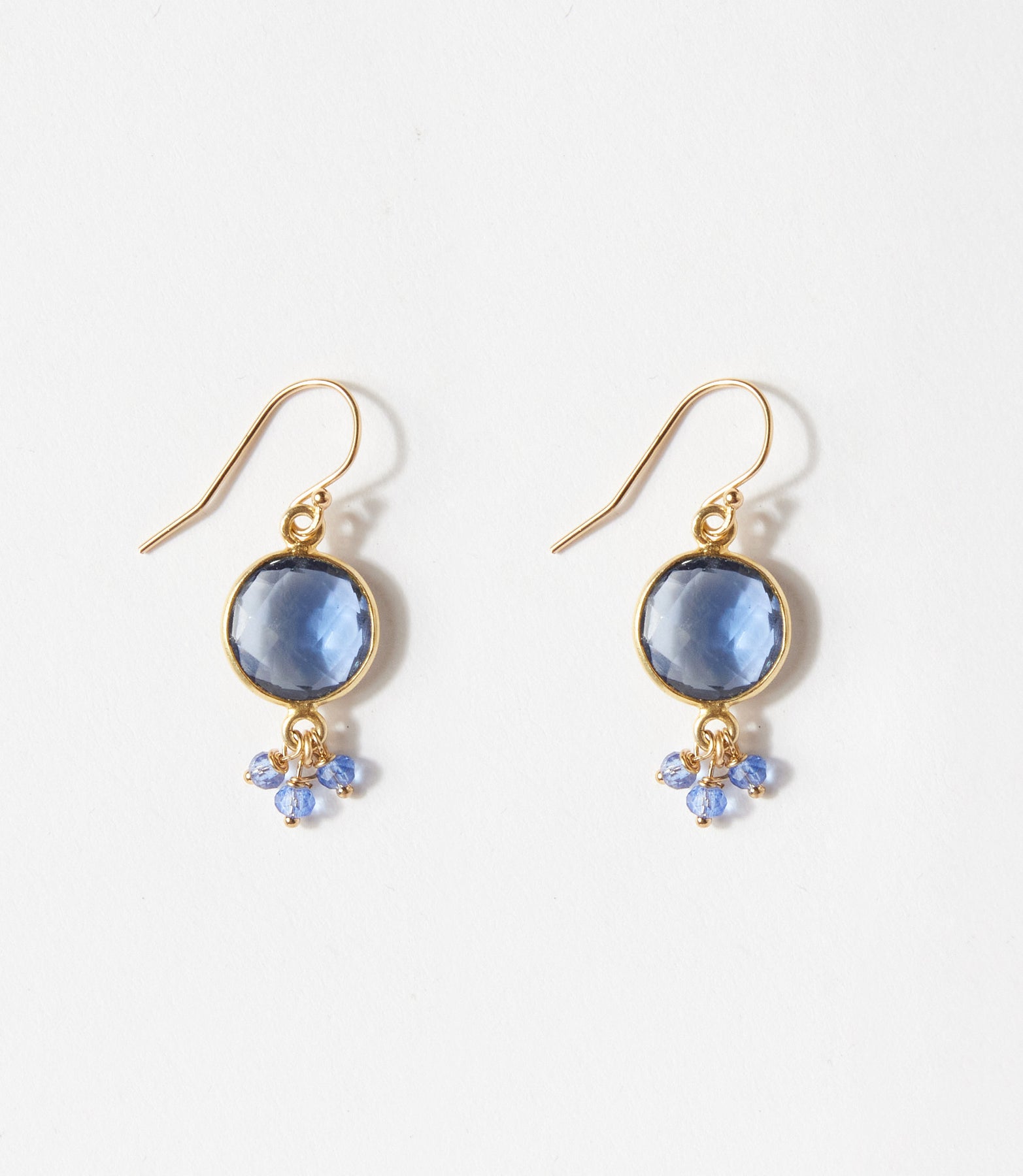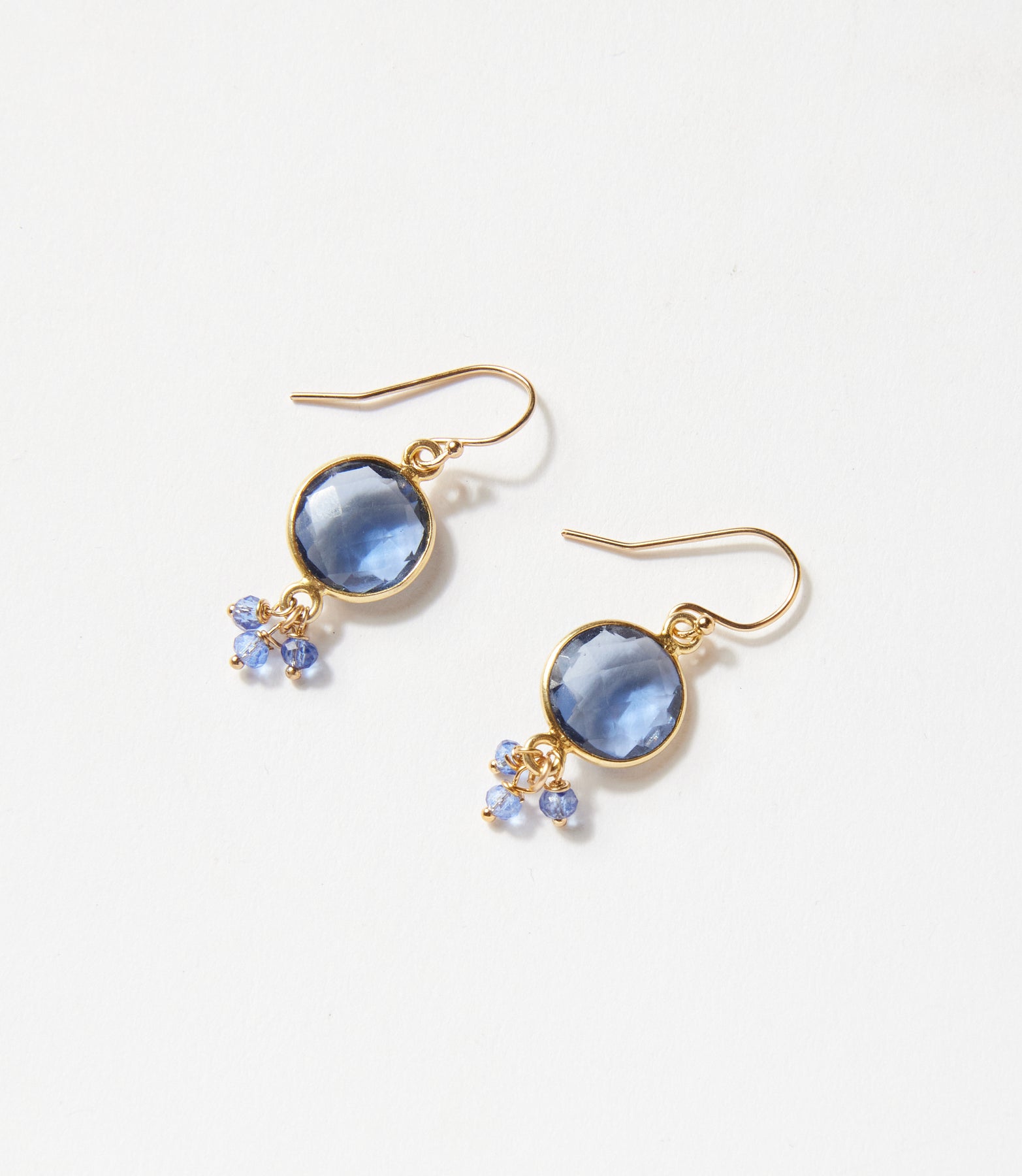 Delicate and radiant, these dangle earrings feature faceted blue iolite stones framed in gold-filled settings, finished with a trio of coordinating gemstone drops.