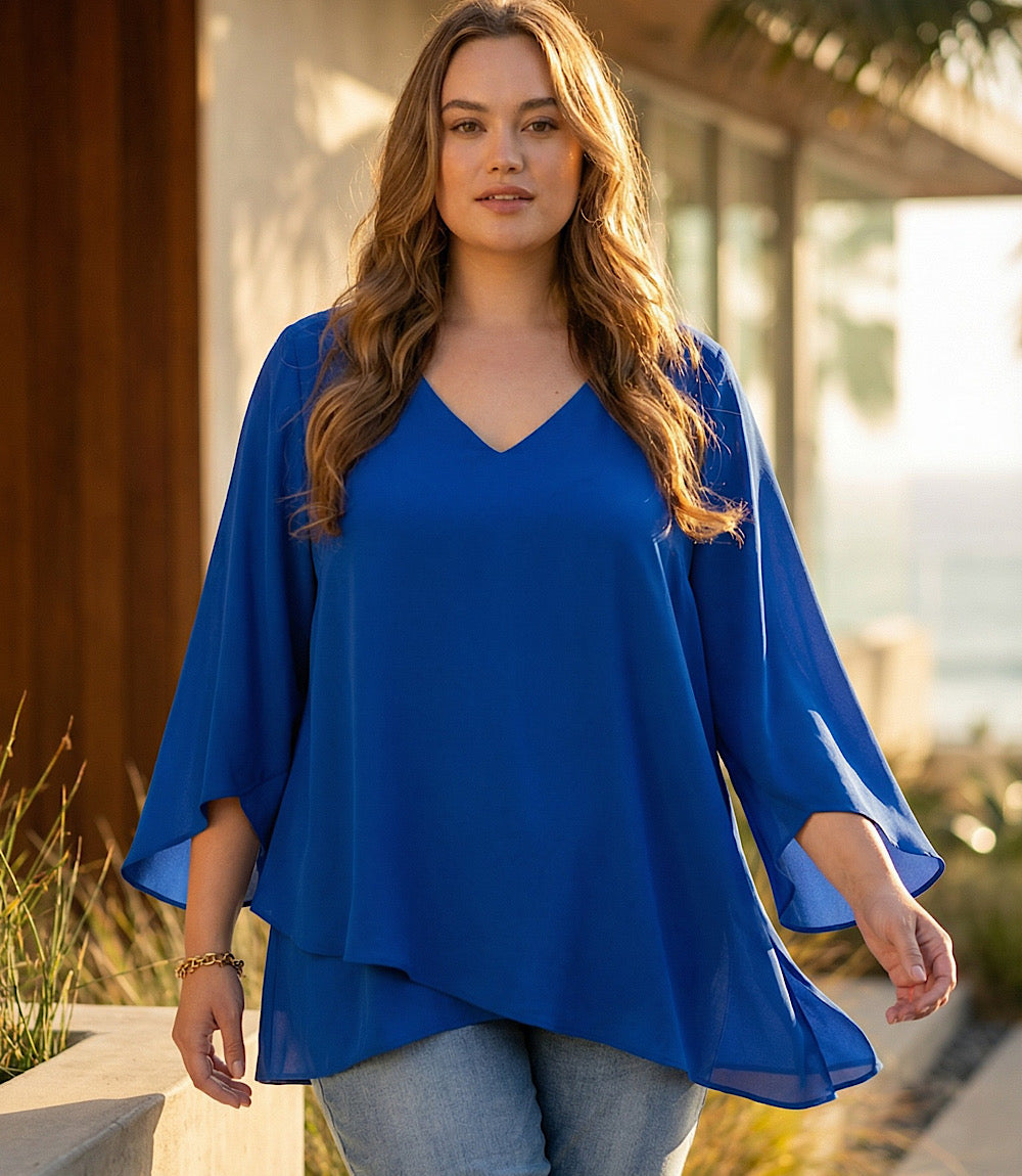 This Bracelet Sleeve Asymmetric Top is made from silky crepe material for an elegant and comfortable feel. The flowy, layered hem adds a touch of movement, perfect for a day at work or a casual night out. Transition effortlessly from day to night with this versatile top.