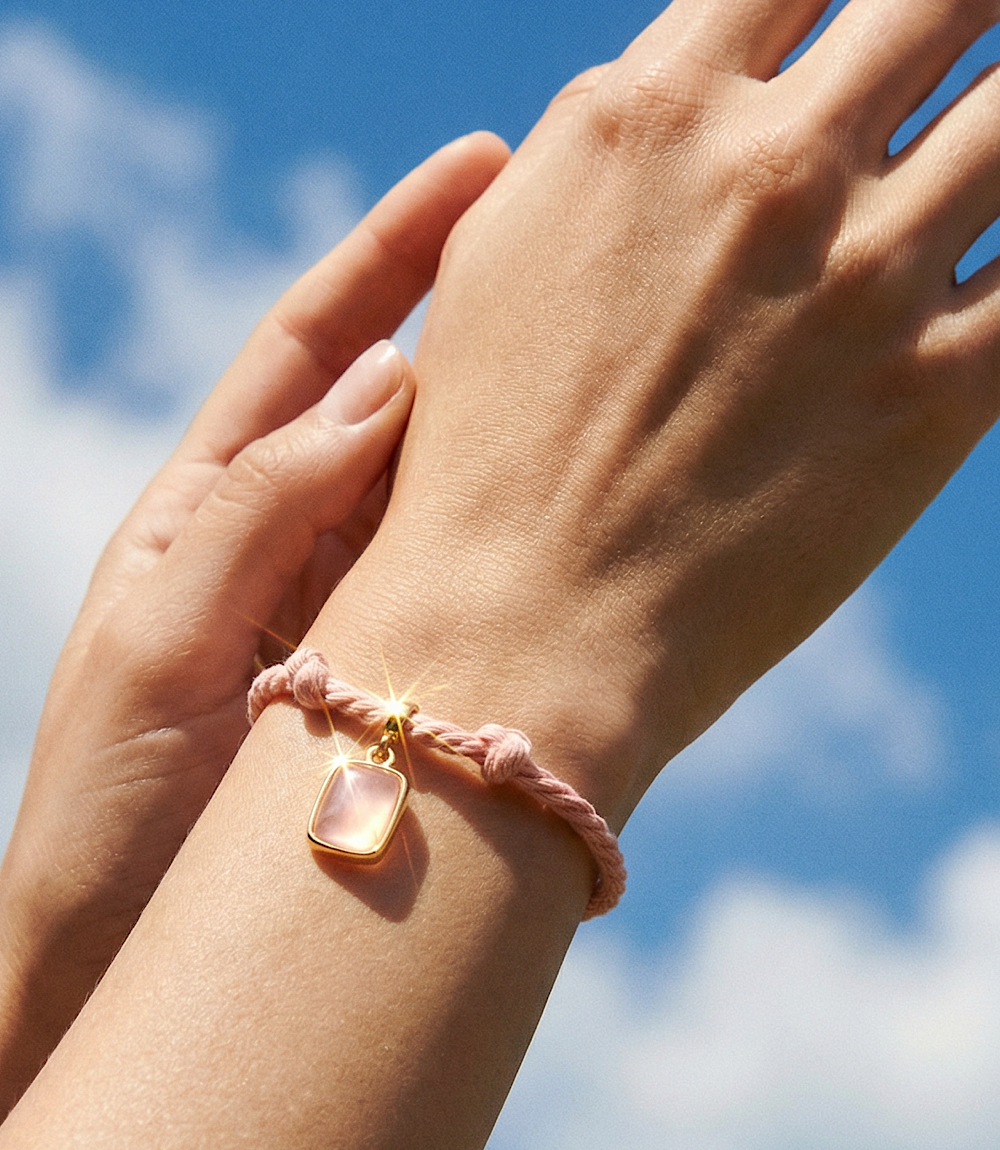 Add a touch of effortless charm with this rectangular gemstone cord bracelet. Featuring a soft pink cotton cord and a sleek gemstone framed in gold-tone detail, it hangs gracefully for a casual yet refined look. The adjustable cord closure ensures a comfortable and secure fit, making it perfect for everyday wear or layering with other favorites.