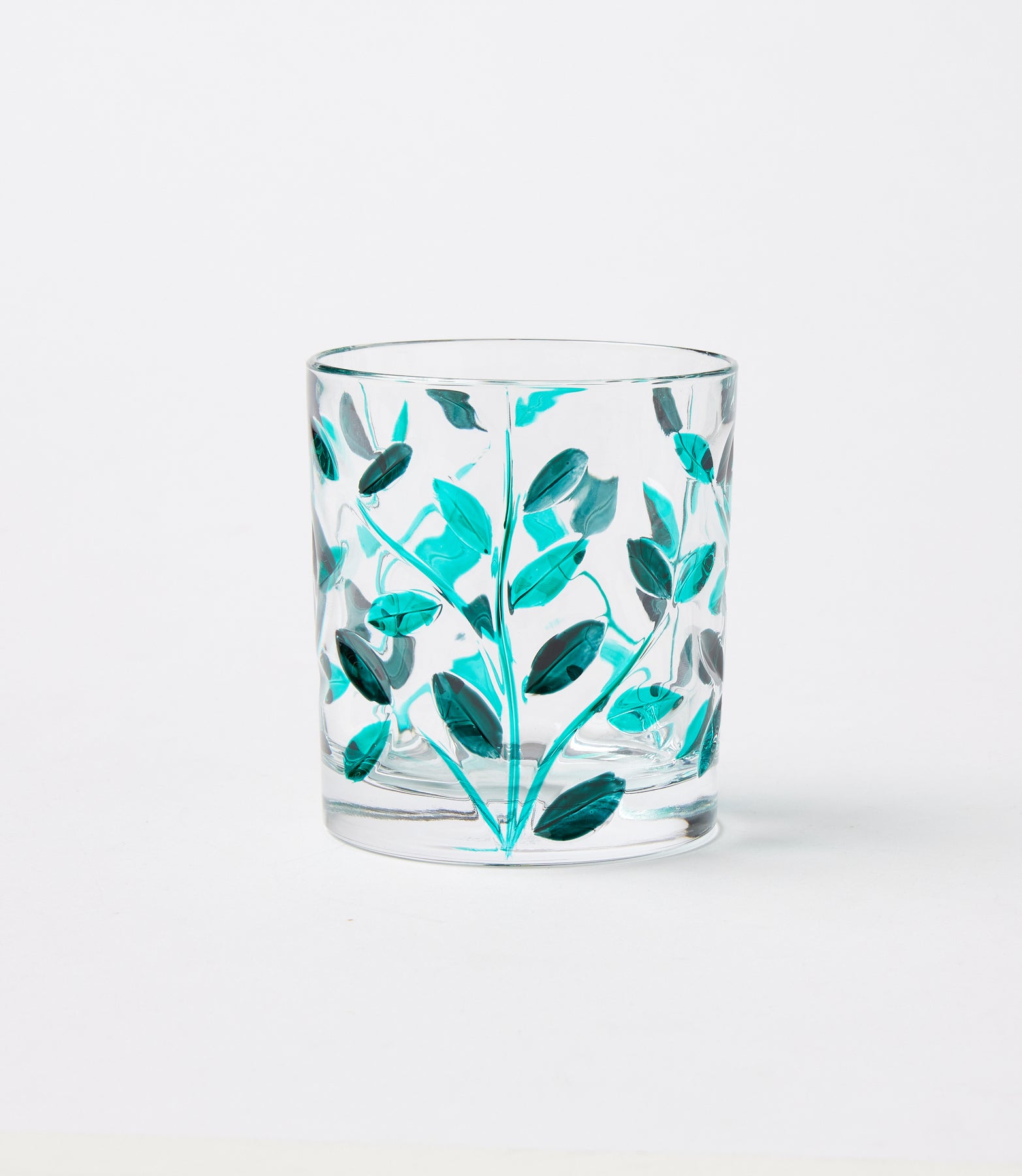 Add an artistic touch to your table with this short hand-painted drinking glass, made in Italy from high-quality, lead-free Italian crystal in a striking sapphire blue. Featuring a delicate flower vine pattern, each glass is hand-painted by skilled artists, blending graceful design with vibrant color. Hand wash recommended to preserve the painted finish.