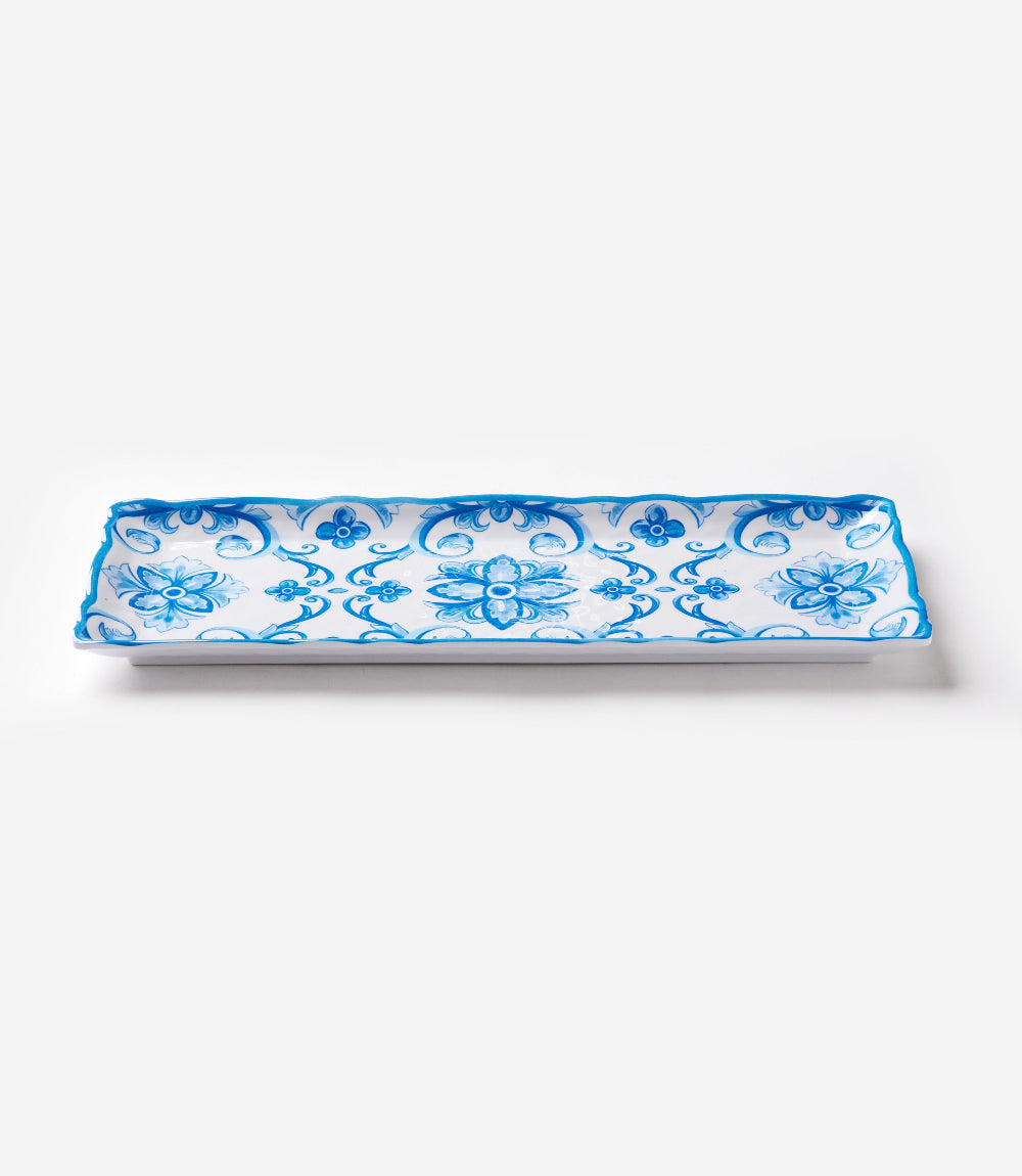 Elevate your presentation with a touch of Mediterranean charm. Inspired by hand-painted Spanish ceramics, this melamine serving tray features a vibrant blue floral design and sturdy handles—perfect for carrying drinks, appetizers, or displaying décor.