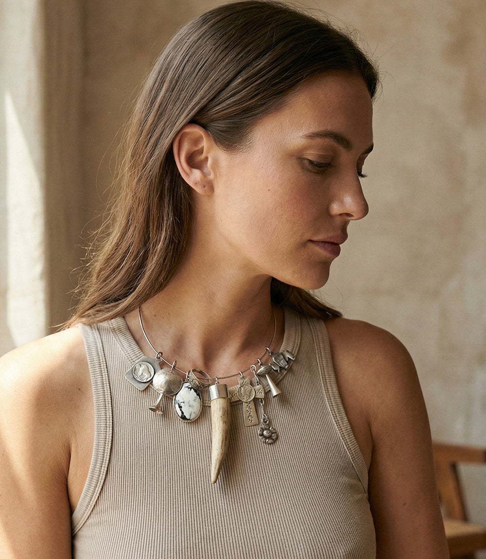 White Buffalo, Horn, Mercury Dime, Charm Necklace