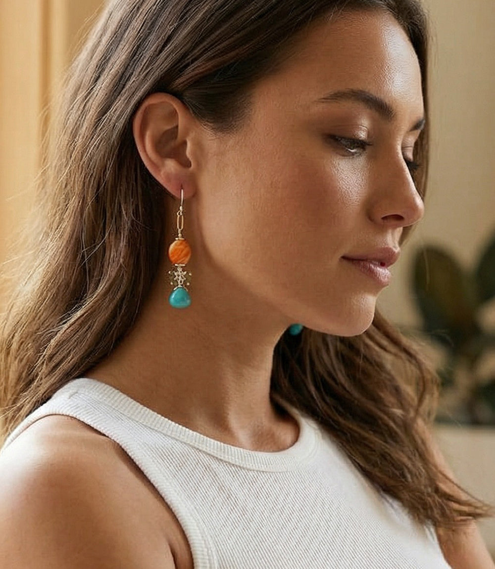 Spiny Oyster & Turquoise Dangle Earrings