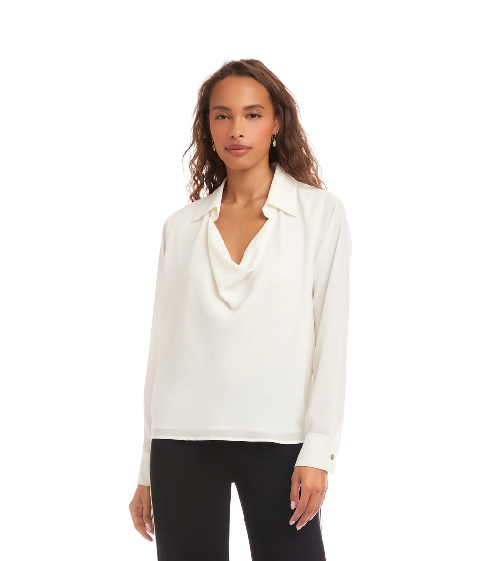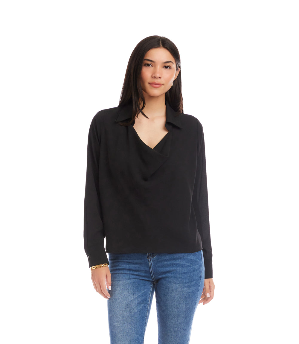 Long Sleeve Collared Cowl Neck Top
