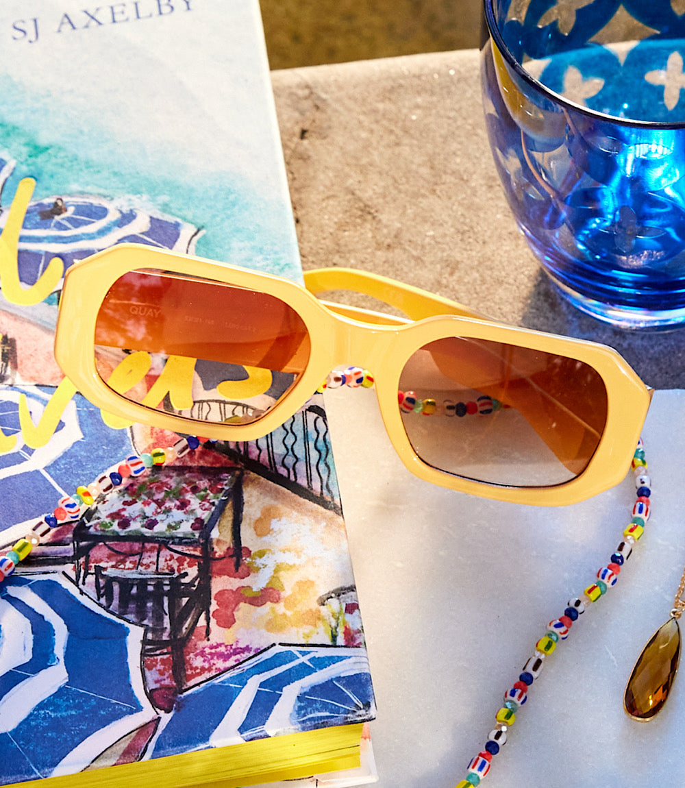Bold and full of attitude, the Quay Hyped Up Sunglasses showcase a striking sunflower-toned frame paired with warm sepia lenses for a modern, sun-kissed aesthetic. Their angular, statement silhouette is balanced with standard arms that offer a comfortable, easy everyday fit—perfect for elevating any look with effortless style.
