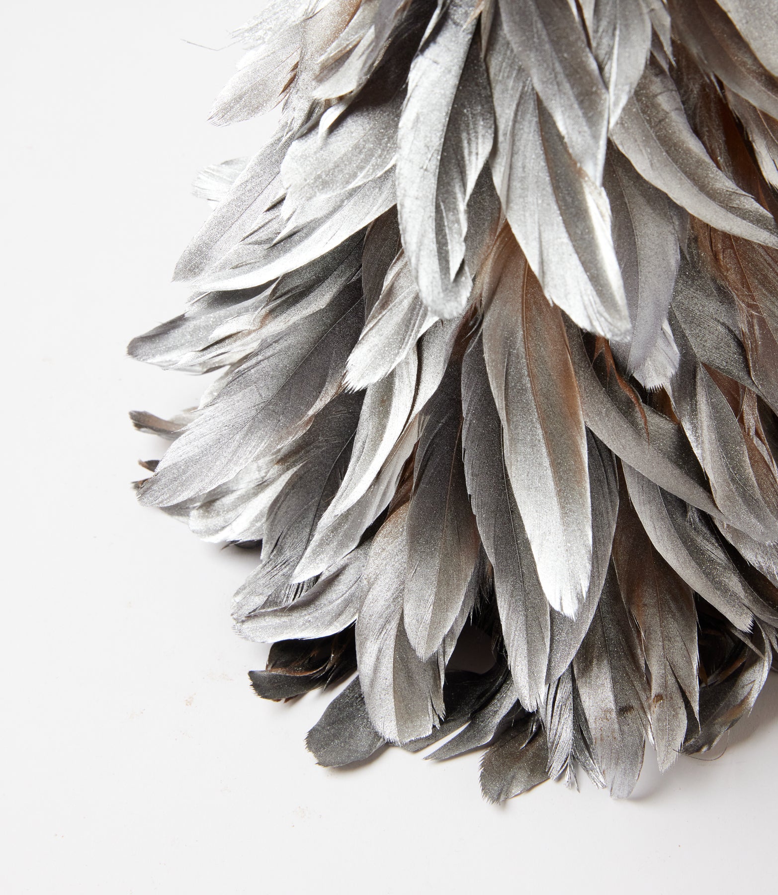 Add a touch of elegance and texture to your holiday décor with this stunning flocked feather metallic tree. Featuring layers of soft silver-toned feathers with a subtle shimmer, the metallic finish is intentionally applied to allow glimpses of the natural feather color beneath, adding depth and dimension. It brings warmth and sophistication to mantels, tabletops, or holiday centerpieces, and pairs beautifully with other décor pieces for a modern yet festive charm.