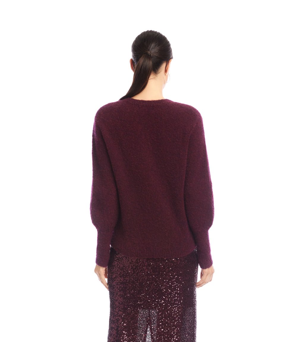 Soft and cozy with a touch of texture, this bouclé sweater is the perfect blend of comfort and style. Designed with gently voluminous blouson long sleeves, it offers a relaxed yet polished silhouette. Crafted with a hint of minimal wool for lightweight warmth, it’s finished with ribbed cuffs and hem for a refined touch. Effortless to dress up or down, it pairs beautifully with denim or tailored bottoms.