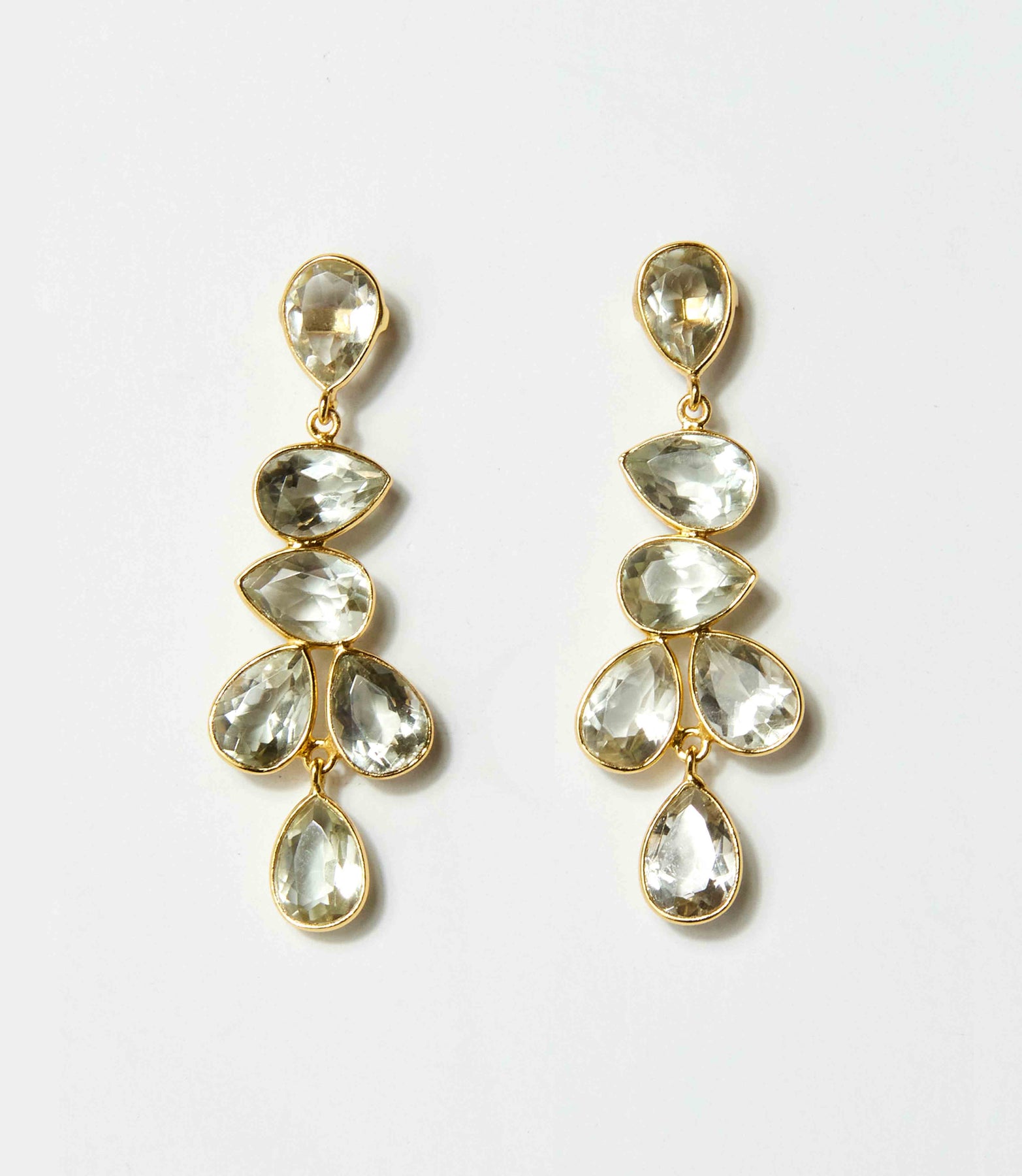 Enhance your elegance with our Multi-Drop Gemstone Earrings. Suspended delicately in a multi-drop design are sparkling, clear gemstones. Perfect for any occasion, these earrings effortlessly combine timeless beauty and modern style. Meticulously selected for their clarity and brilliance, they are versatile and add a touch of glamour to any outfit.