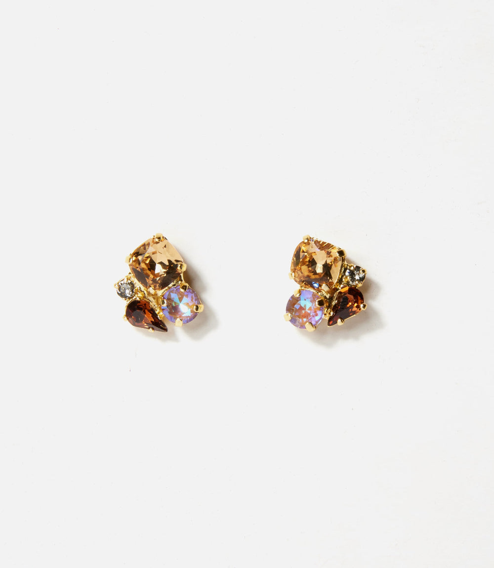 The Gemstone Cluster Stud Earrings showcase a dazzling mix of honey-colored crystals arranged in an elegant clustered design. Set in a gold-tone finish and designed with a straight post back for secure wear, these studs bring a touch of sparkle and sophistication, perfect for both casual charm and special occasions.
