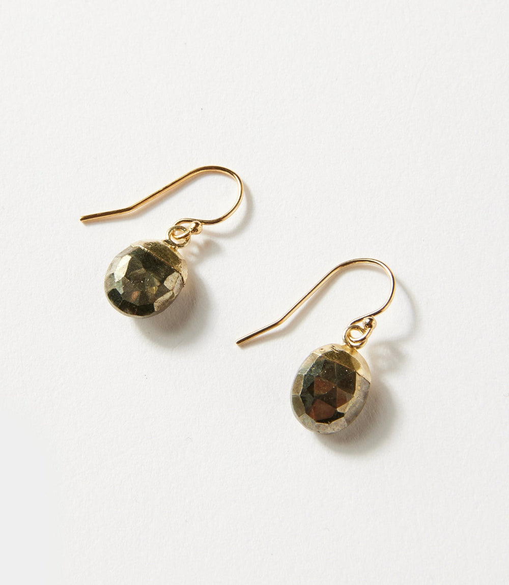 The Pyrite Bezel Simple Earrings feature faceted pyrite gemstones set in sleek bezels, hanging gracefully from gold-filled ear wires. Their minimalist design and natural metallic shimmer make them perfect for everyday wear or special occasions, adding a touch of understated sophistication to any outfit.