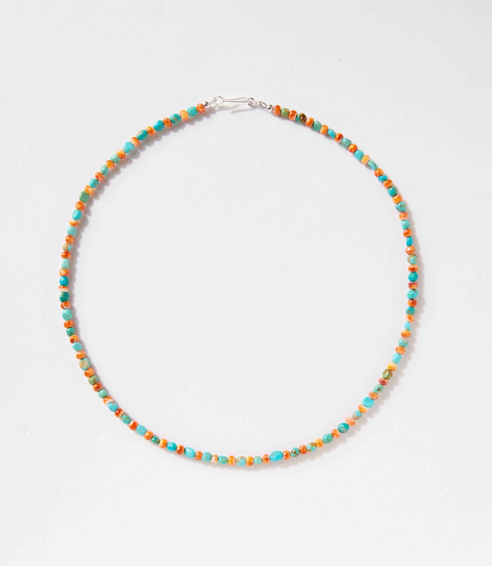 This exquisite necklace features stunning accents of turquoise and spiny oyster beads, expertly handcrafted by Navajo artists. The natural materials used and the use of sterling silver add a touch of authenticity and timeless elegance to this piece.