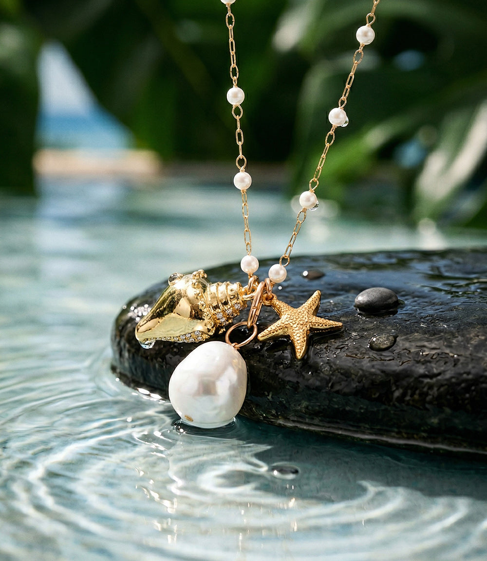 Galaxy Disc And Oval Gemstone Cord Necklace