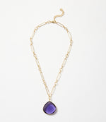 Make a bold yet elegant statement with this faceted amethyst quartz pendant. The rich purple hue catches the light beautifully, while the oversized stone adds a modern, eye-catching touch to the classic gold chain. Perfect for elevating everyday looks or completing a night-out ensemble.