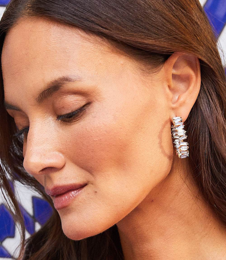 Elevate your look with these stunning blue crystal hoop earrings. The perfect addition to any outfit, these earrings catch the light for a captivating effect. A must-have for any jewelry collection.