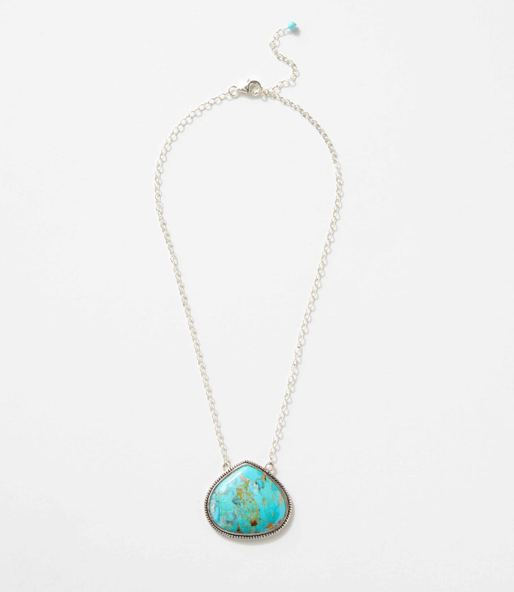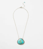 Inspired by natural beauty and bold color, this necklace features a striking turquoise pendant with organic marbling and a subtly textured border. The vivid blue hue adds a fresh, earthy charm that pairs perfectly with both casual and elevated looks. Finished with a lobster claw closure and extender chain for adjustable length and ease of wear.