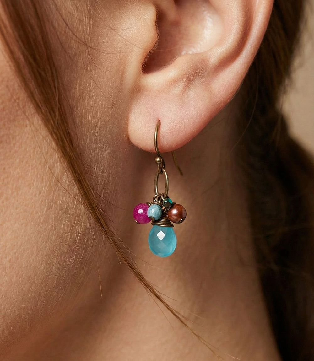 Playful and vibrant, the Czech Glass Cluster Earrings feature a mix of colorful Czech glass beads gathered into a charming cluster design. Suspended from hook-style ear wires, these lightweight earrings add movement, texture, and a pop of color—perfect for bringing a bohemian touch to everyday styling.