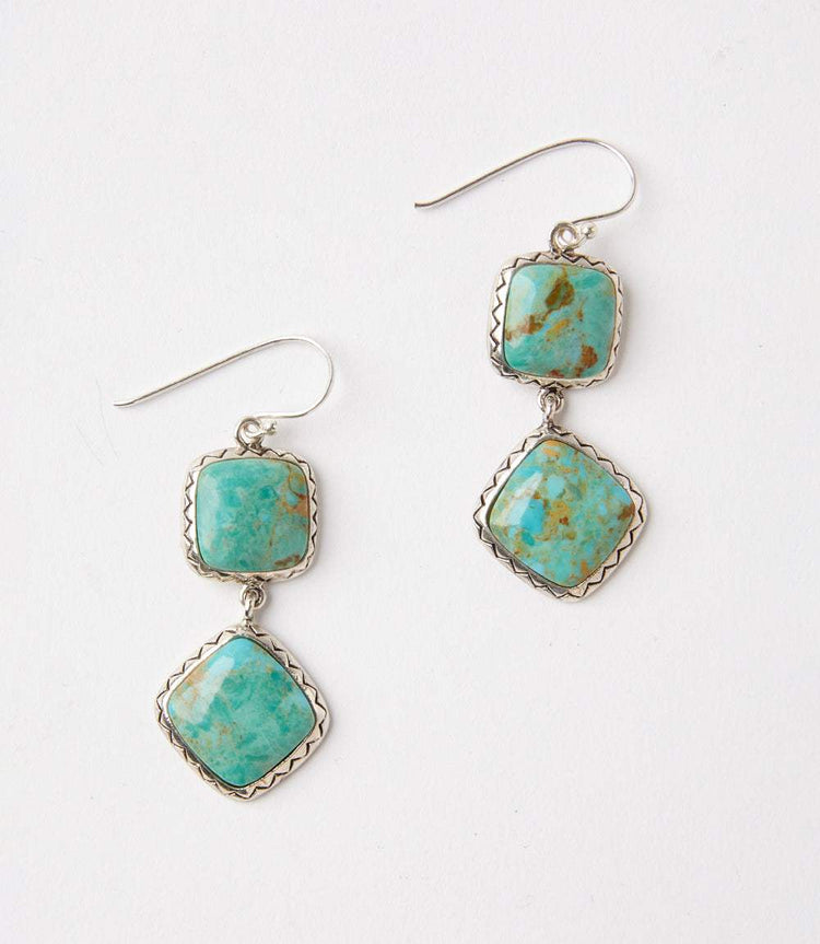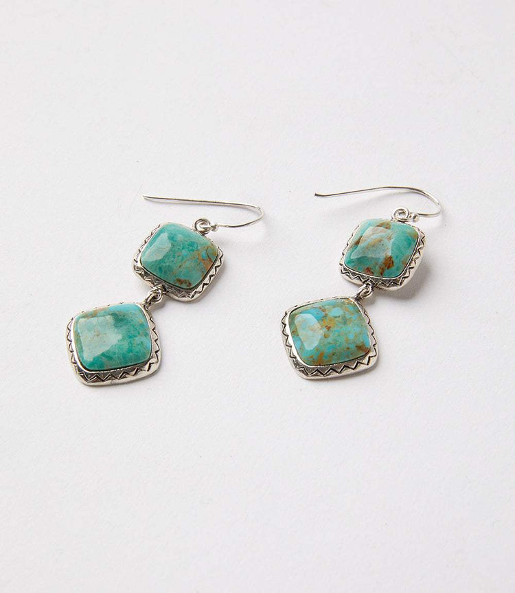 Handcrafted by artisans, these stunning earrings are detailed with turquoise stones encased in sterling-silver. Featuring handcrafted design and genuine turquoise accents, these beautiful earrings add a touch of elegance to any outfit.