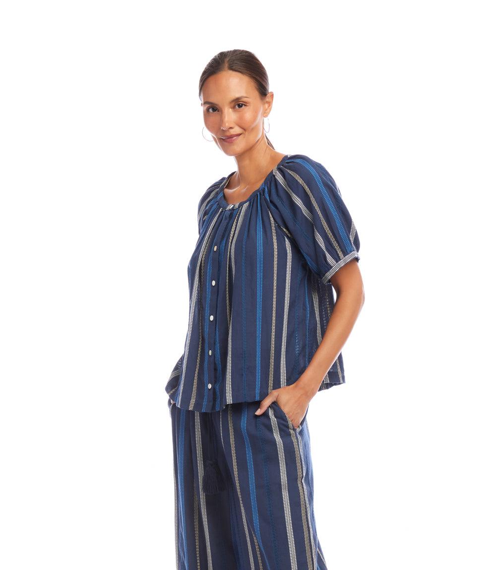 Featuring delicate, intricate embroidery on embroidered cotton woven fabric, this top adds a touch of artistry while combining comfort with style in the most effortless way. The soft fabric and flattering short sleeves make it perfect for warmer days or layering under your favorite jackets.