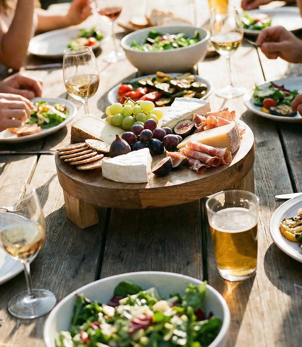 Elevate your presentation with this beautifully crafted Footed Round Charcuterie Board. Made from mango wood, each board highlights the material’s naturally striking grain, showcasing a blend of warm golden tan and rich dark brown hues. The raised, footed design adds both visual interest and functional stability, making it perfect for serving charcuterie, small bites, or decorative centerpieces.