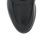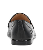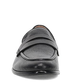 The Frye Faith Loafer in black is crafted from supple Natural Milled Nappa Leather for a polished yet effortless look. This sleek loafer features a classic penny strap and refined moc-toe stitching, with a gently rounded toe and low-profile sole for a clean, versatile silhouette. Discreet logo embossing at the heel adds a subtle branded touch.