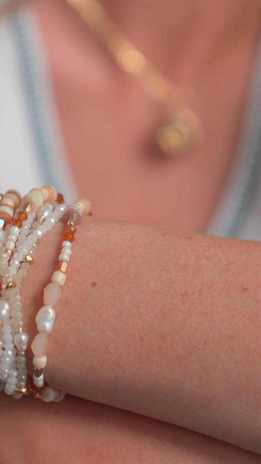 Add an elegant charm to your look with this one-of-a-kind champagne-toned crystal beads and pearl bracelet. Wrap this bracelet gently around the wrist for a unique stacked appearance or even wear it as a necklace for a different look.