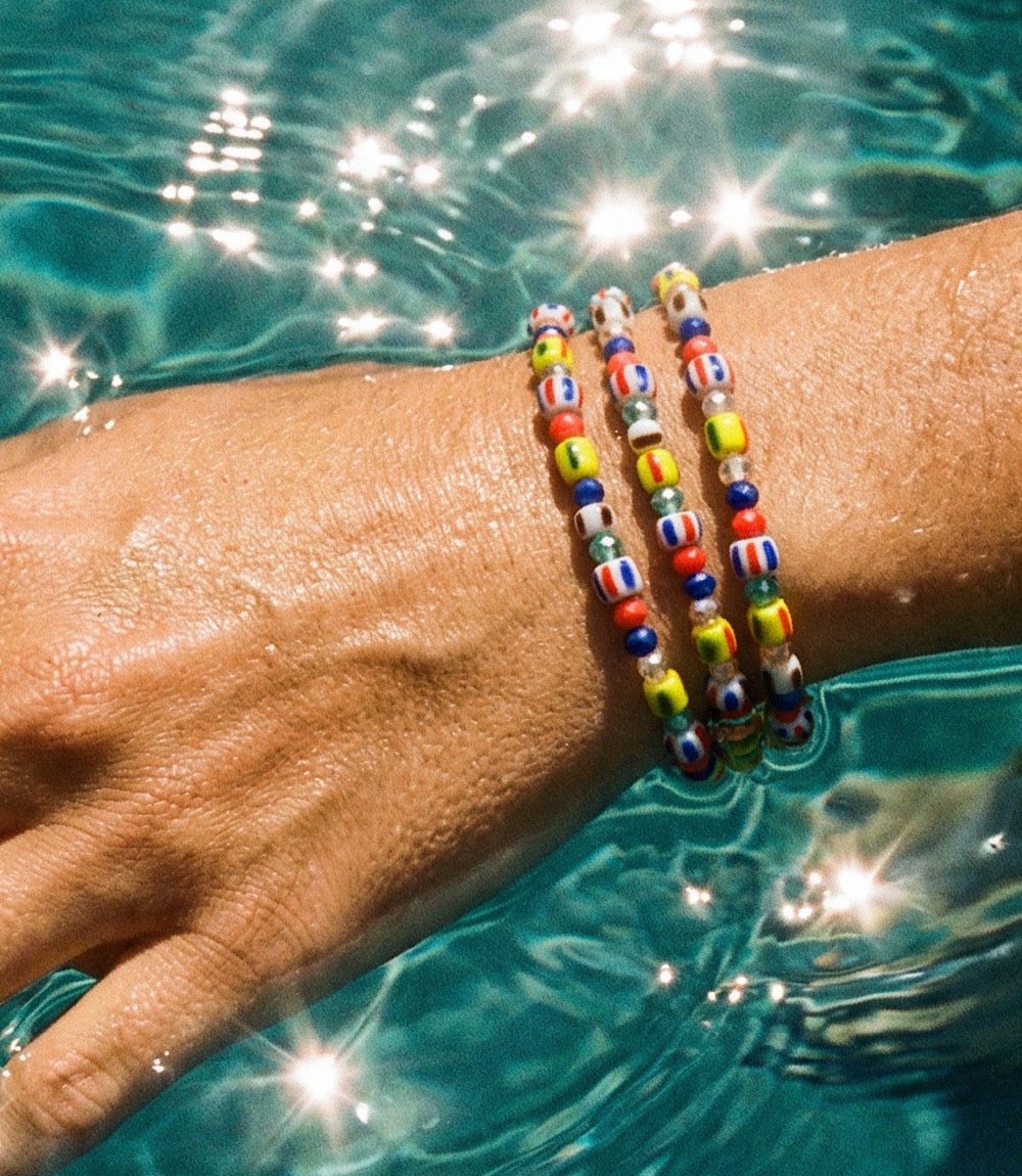Vibrant and full of personality, this wrap bracelet is crafted from colorful glass beads arranged in a playful, eye-catching mix. Designed to coil comfortably around the wrist, it offers an easy, slip-on fit with a layered look in a single piece. Lightweight and versatile, it adds a fun pop of color to any outfit—perfect for everyday wear or stacking with your favorite bracelets.