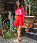 Crafted from premium linen fabric, these tailored shorts feature a slant pocket and offer a luxurious feel against your skin while ensuring breathability during warm days. The high-waisted and pleated design not only provides a slimming effect but also adds a touch of timeless elegance to your ensemble.