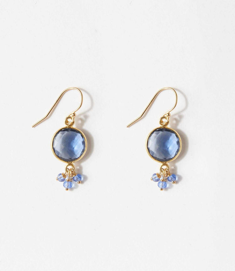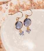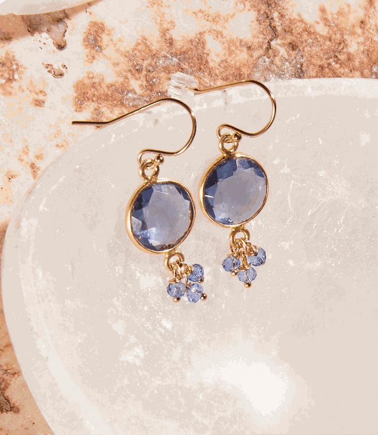 Delicate and radiant, these dangle earrings feature faceted blue iolite stones framed in gold-filled settings, finished with a trio of coordinating gemstone drops.