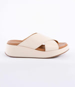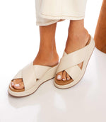 Key Largo Slip On platform sandals with beige leather crisscross straps and 2-inch soft soles