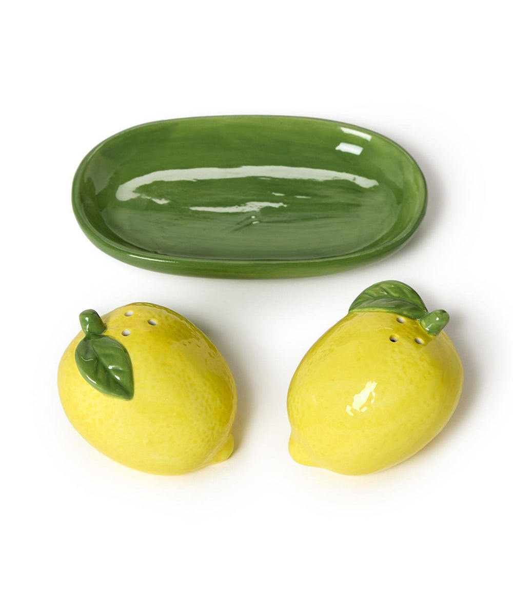 Bring a fun, sunny touch to your table with our Lemon Salt & Pepper Shaker Set. Crafted from durable ceramic and beautifully hand-painted, these charming lemon-shaped shakers come with a matching tray for easy use and display. Perfect for everyday dining or as a decorative accent that adds a bright pop of color to your kitchen décor.