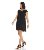 Elevate your wardrobe with this classic dress featuring cap sleeves and a graceful boat neck, perfectly designed with a high-low hem. Finished with an easy-to-travel stretch-jersey knit and a flattering trapeze-forming silhouette, this will be the go-to dress that you reach for time and time again.
