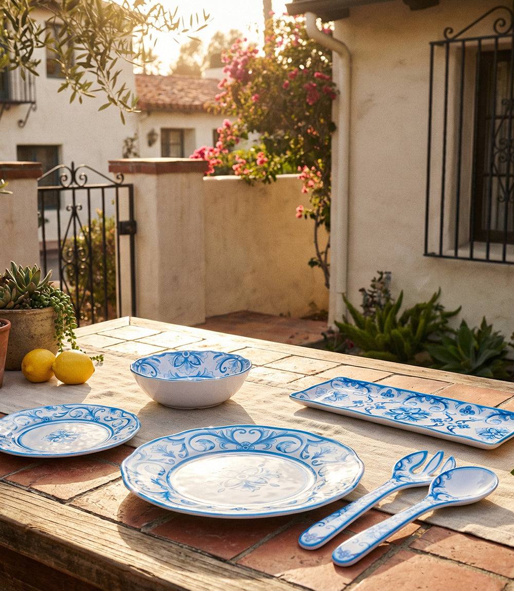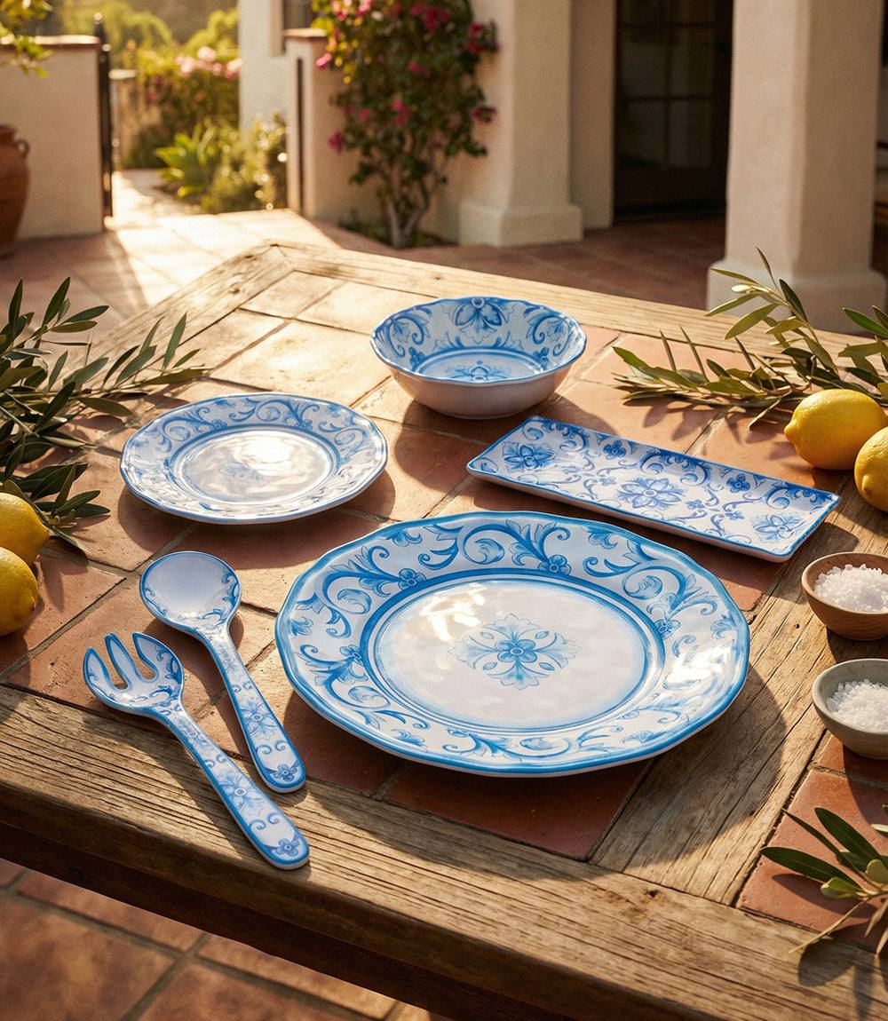 Elevate your presentation with a touch of Mediterranean charm. Inspired by hand-painted Spanish ceramics, this melamine serving tray features a vibrant blue floral design and sturdy handles—perfect for carrying drinks, appetizers, or displaying décor.