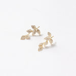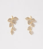 Delicate yet dazzling, these Pavé Leaf Drop Earrings in gold bring nature-inspired elegance to every look. Shaped like graceful leaves and encrusted with shimmering pavé-set stones, they catch the light beautifully with every movement. The warm gold finish enhances their refined charm, while the slender drop silhouette adds a touch of effortless sophistication.