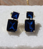 Bold and elegant, these drop earrings feature stacked princess-cut cubic zirconia stones in a rich sapphire blue hue. Set in gold over brass, their clean lines and timeless silhouette make them a striking choice for both everyday glam and special occasions.