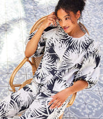 This button front shirt features a playful palm print and puff sleeves for a stylish and comfortable look. Made from soft and breathable cotton, it can be effortlessly paired with your favorite shorts or the matching drawstring pants for a complete, on-trend outfit.