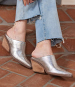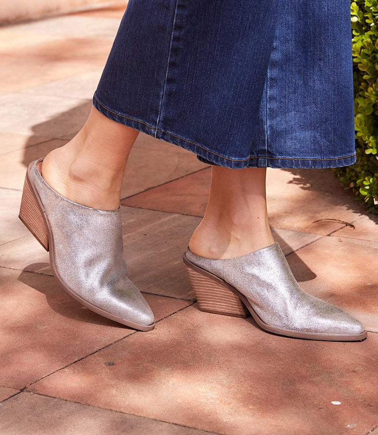 Crafted in a pewter suede hue, these modern mules blend the attitude of a boot with the ease of a slip-on. The pointed toe and sculpted stacked heel give off a refined Western edge, while the backless design keeps things effortlessly cool and versatile.