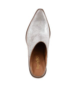 Seychelles Morning Joe mule boots in pewter suede with pointed toe and stacked heel slip-on design
