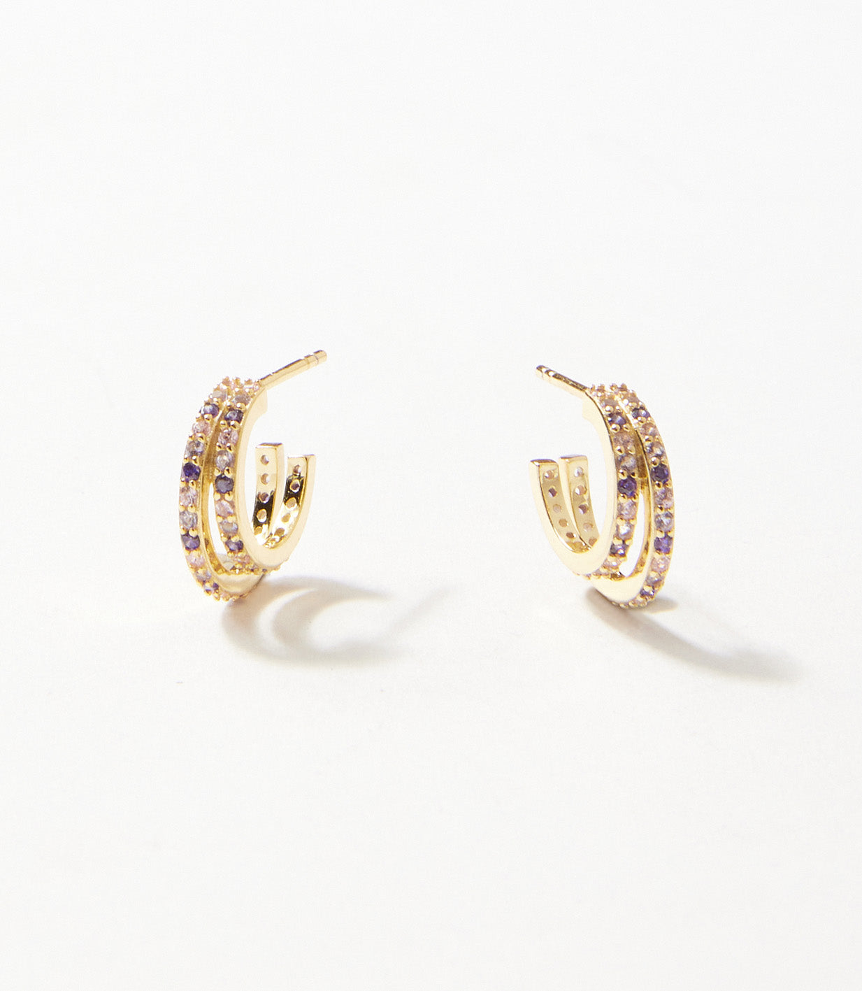 Add modern elegance to your collection with the Twin Huggie Earrings. Designed with a chic double-hoop silhouette, each hoop sparkles with vibrant purple cubic zirconia set in radiant gold vermeil. Finished with secure post back closures, these earrings offer both comfort and style — perfect for everyday wear or dressing up your look.